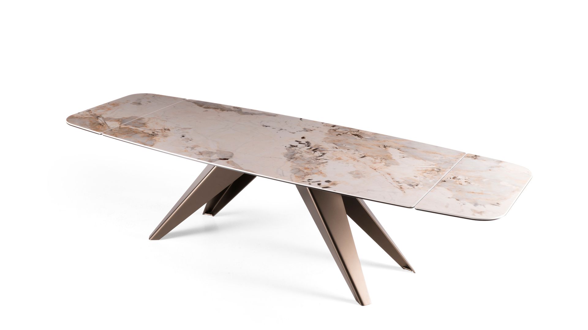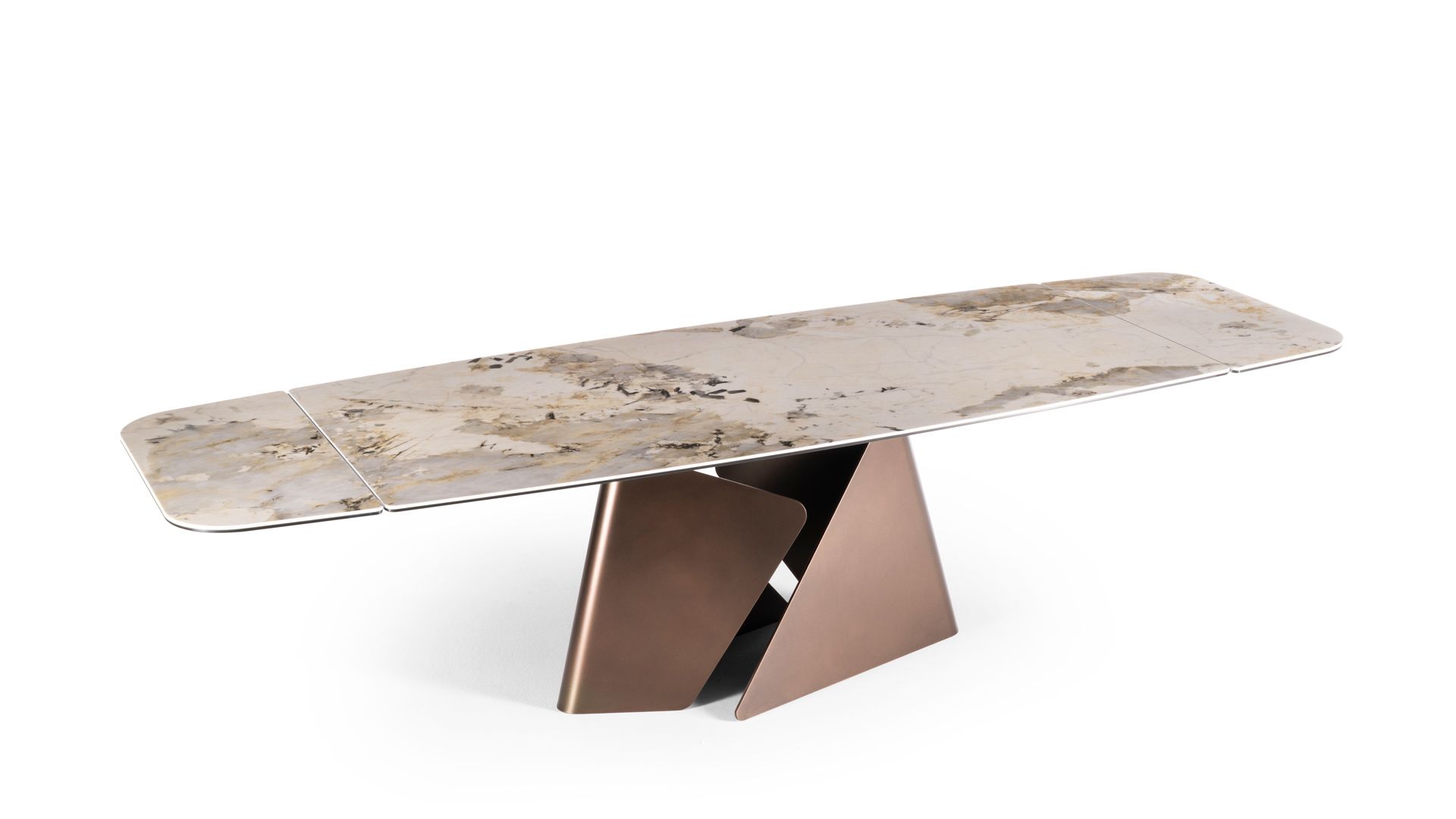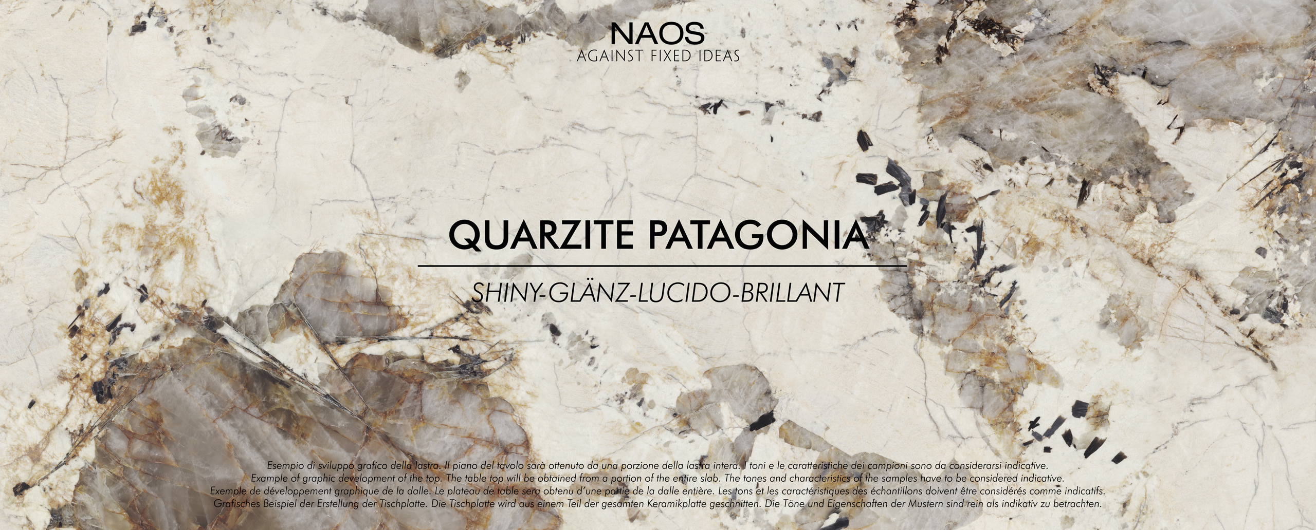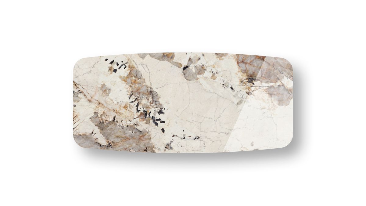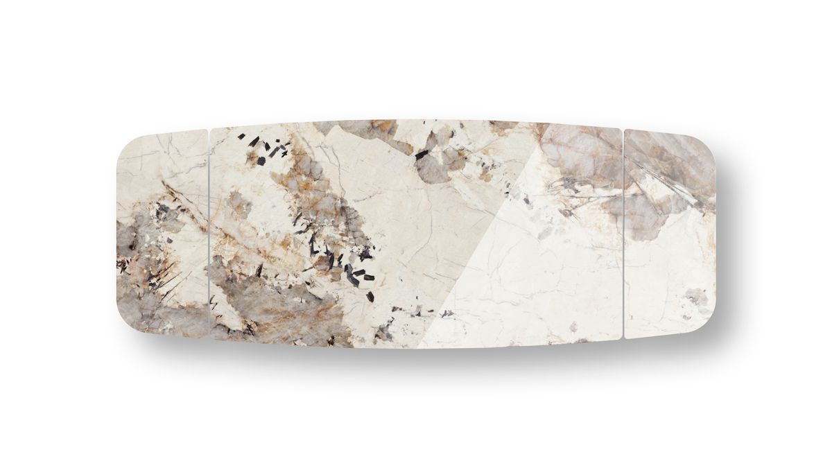 Example of graphic development of the top. The table top will be obtained from a portion of the entire slab. The tones and characteristics of the samples have to be considered indicative.