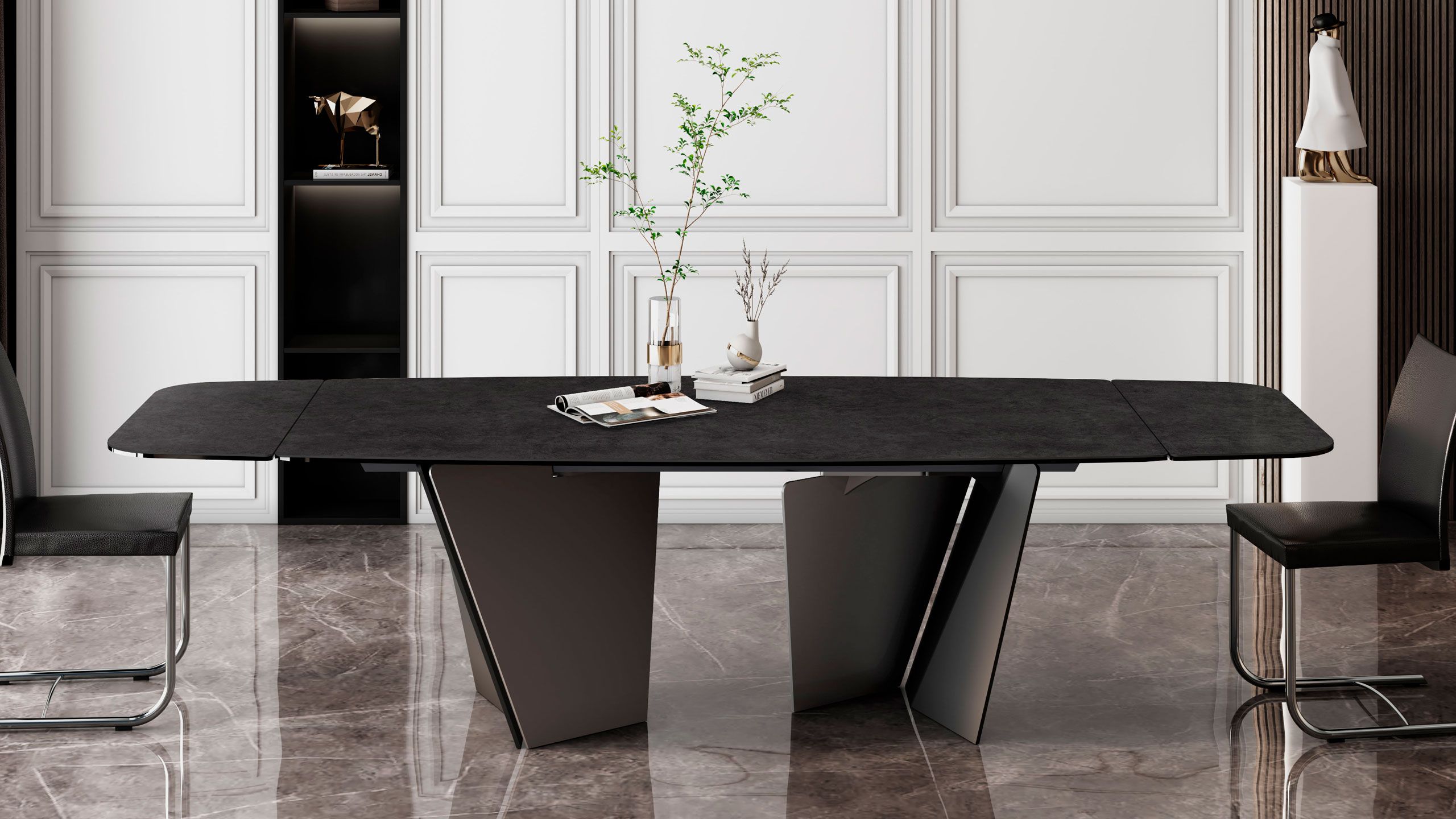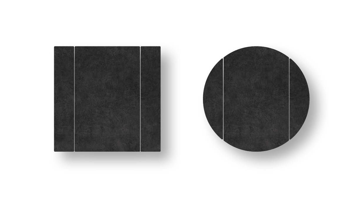 Example of graphic development of the top. The table top will be obtained from a portion of the entire slab. The tones and characteristics of the samples have to be considered indicative.