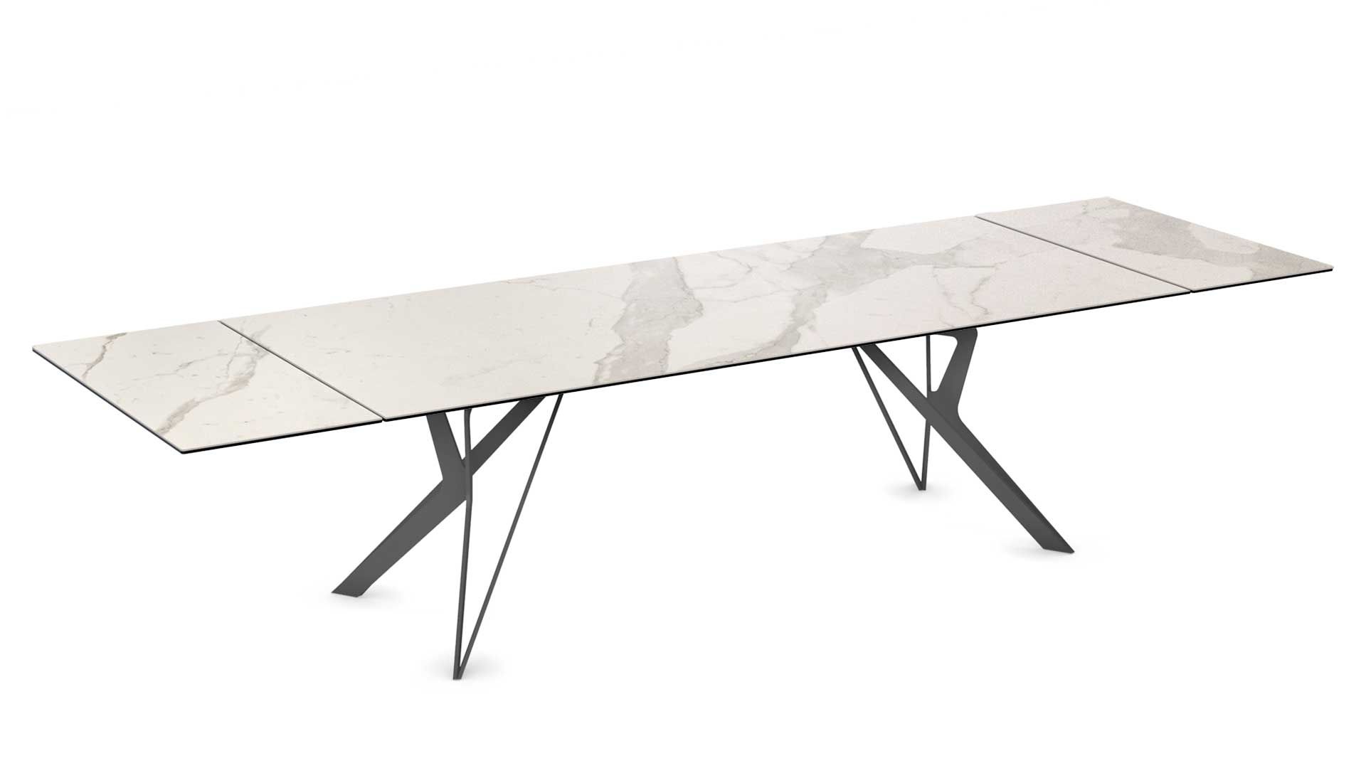 THE GIANTS È LA NUOVA COLLEZIONE DI TAVOLI ALLUNGABILI DI GRANDI DIMENSIONI. LO SPECIALE MECCANISMO NAOS PERMETTE, TRAMITE LE DUE PROLUNGHE, L'ALLUNGAMENTO DEL PIANO DI 100 CM (50 CM CIASCUNA). LA DIMENSIONE MINIMA DEL TAVOLO CHIUSO È 240 CM PER ARRIVARE A 400 CM APERTO. PIANO DISPONIBILE IN VETRO O IN CERAMICA. GAMBE IN METALLO VERNICIATO.