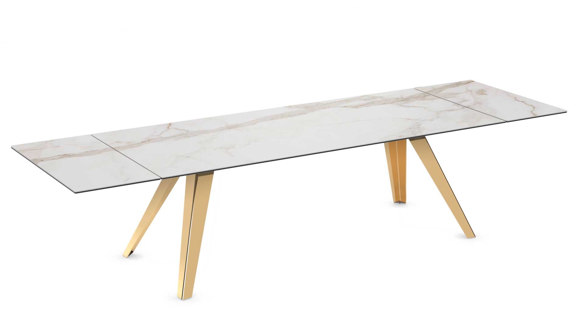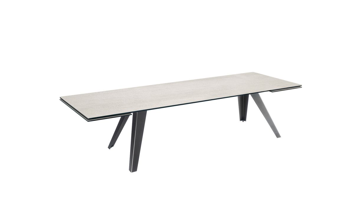 THE GIANTS È LA NUOVA COLLEZIONE DI TAVOLI ALLUNGABILI DI GRANDI DIMENSIONI. LO SPECIALE MECCANISMO NAOS PERMETTE, TRAMITE LE DUE PROLUNGHE, L'ALLUNGAMENTO DEL PIANO DI 100 CM (50 CM CIASCUNA). LA DIMENSIONE MINIMA DEL TAVOLO CHIUSO È 240 CM PER ARRIVARE A 400 CM APERTO. PIANO DISPONIBILE IN VETRO O IN CERAMICA. GAMBE IN METALLO VERNICIATO O CROMATE.